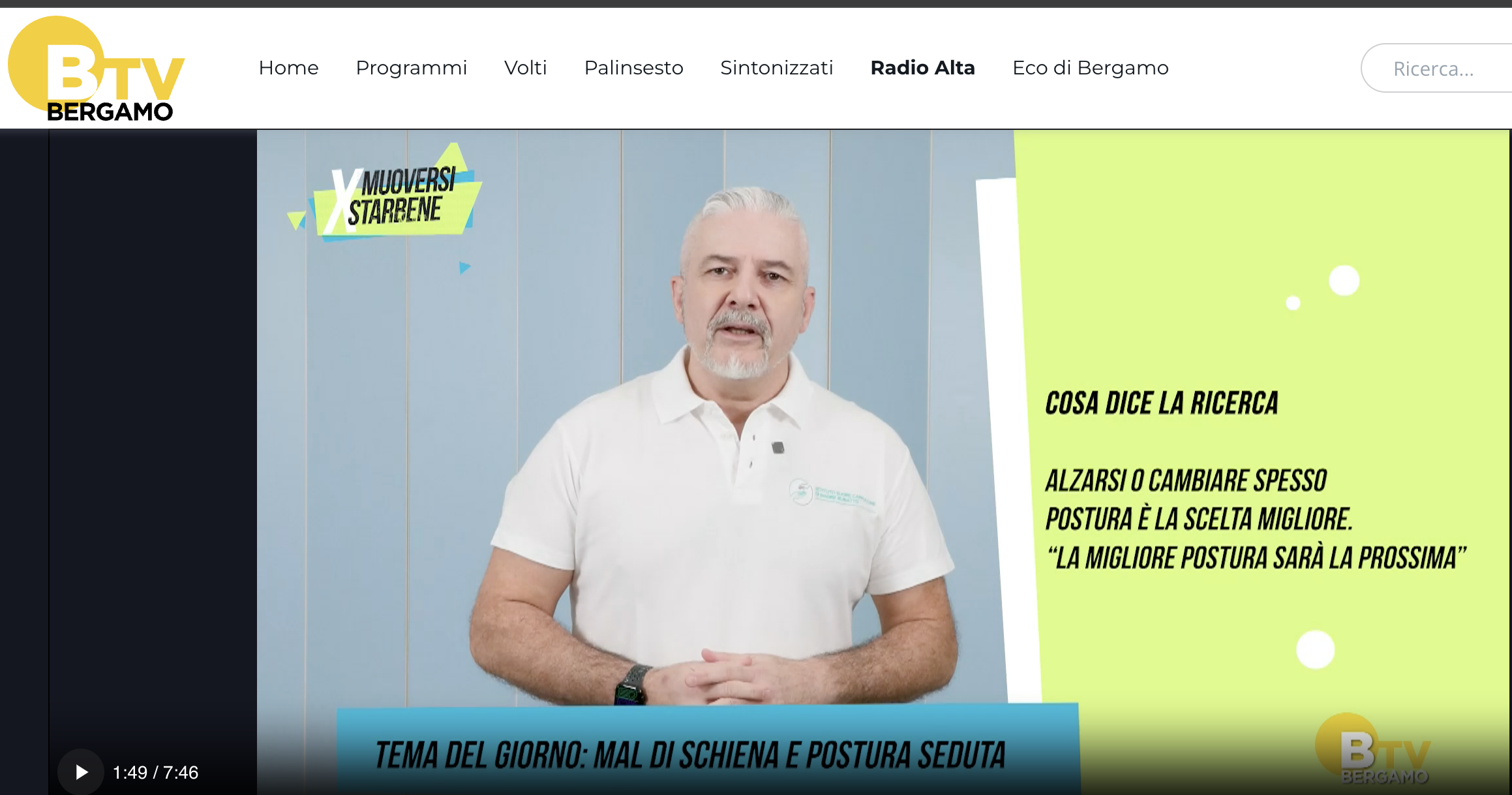 “Muoversi X Starbene” è una trasmissione realizzata in collaborazione tra Casa di Cura San Francesco e Bergamo TV, dedicata al benessere dell’apparato neuro-muscolo-scheletrico.
